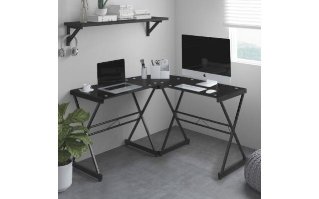 L-Shaped Glass Computer Computer Desk, Black donated by Sewessentials
